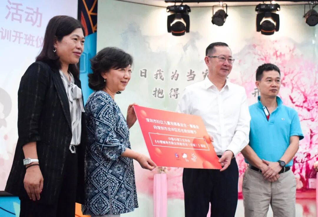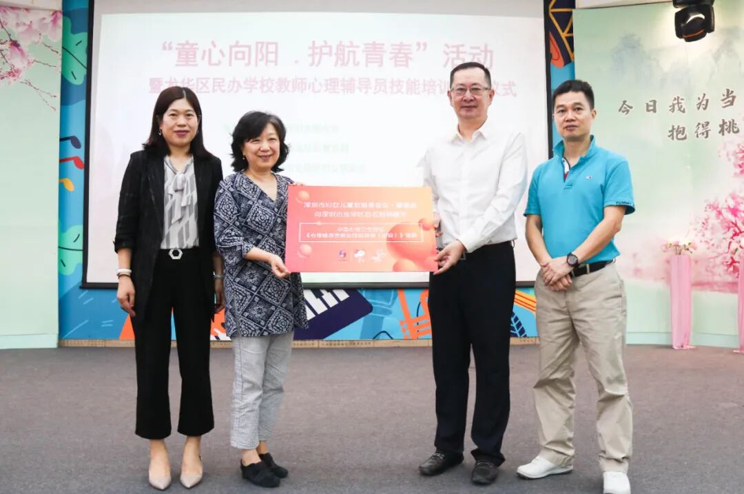 活动现场,深圳市妇女儿童发展基金会·馨基金向龙华区32所民办学校100名教师捐赠了由中国心理卫生协会开展的《心理辅导员职业技能培训(中级)》课程,提升教师对青少年的心理辅导能力、辅导家长进行良好家庭心理教育能力,为青少年健康成长保驾护航,助力儿童友好型城市建设。